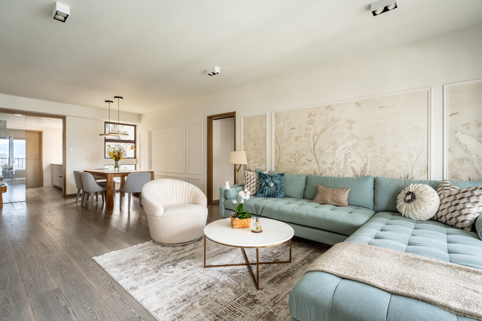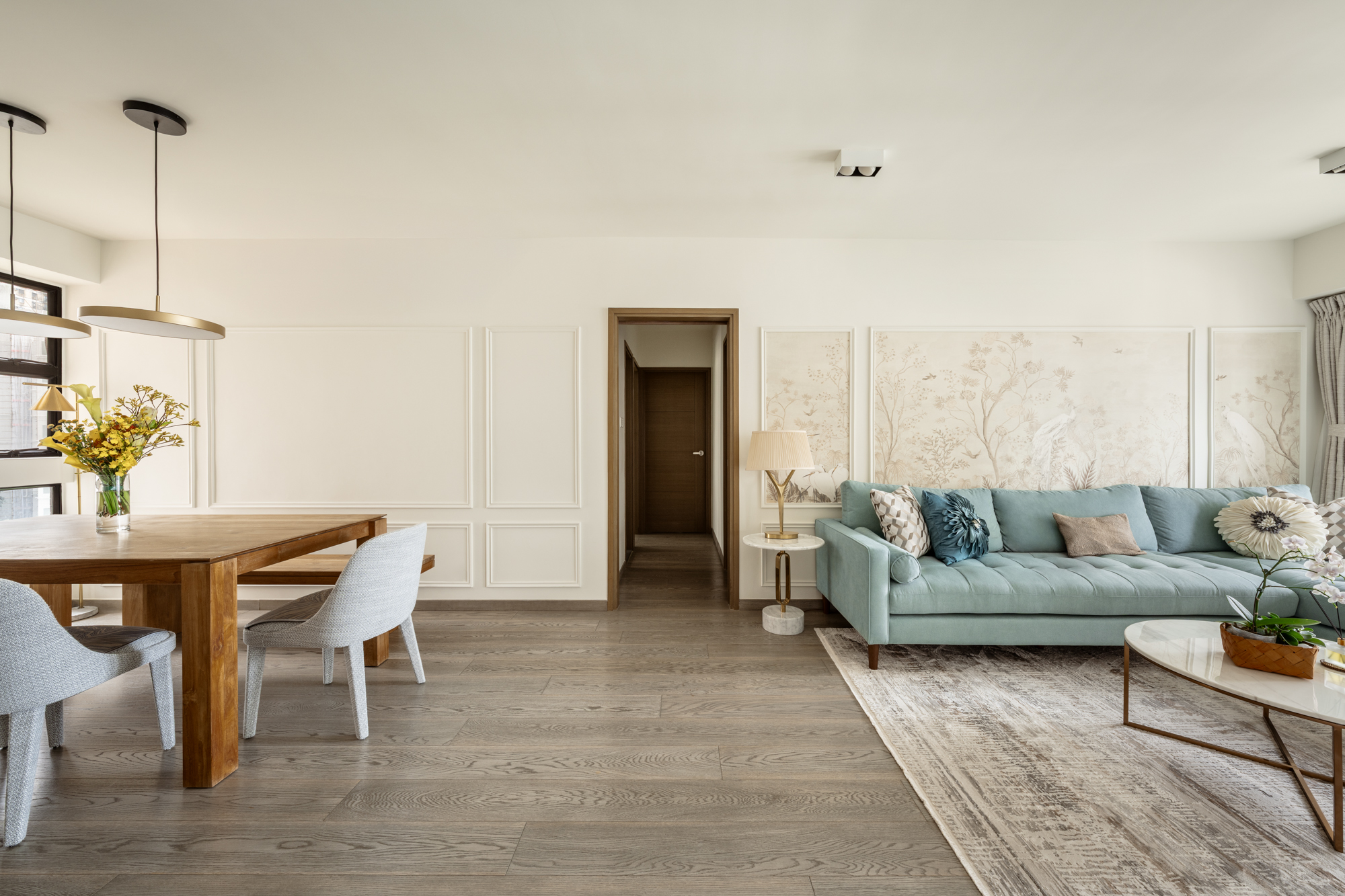 Holly’s vision for her Mid-Levels home was simple: she wanted it to feel classic, but not boring. Colourful, but not loud. A place that felt equal parts refined and lived-in, where her family could really settle in. We took cues from chinoiserie detailing and layered in texture through soft textiles, natural wood, and thoughtful finishes. Since maximising space is always a factor, we made sure each area had room for more than one purpose. That meant plenty of storage and layouts that made room for both work and play. The end result is a warm, textured home that balances refinement with ease.