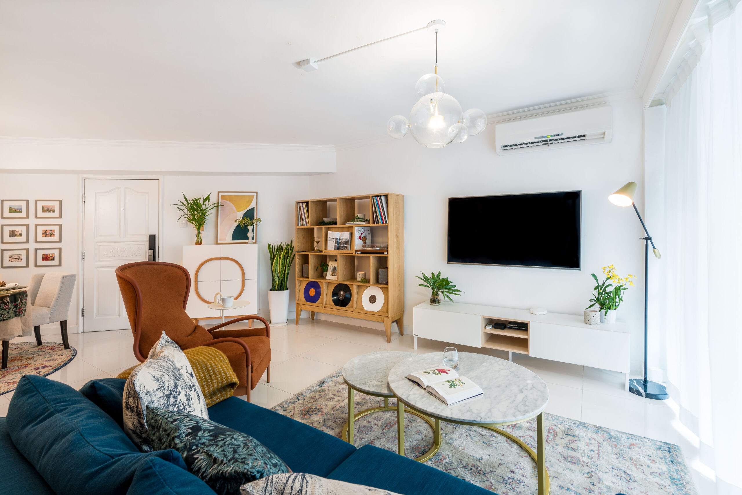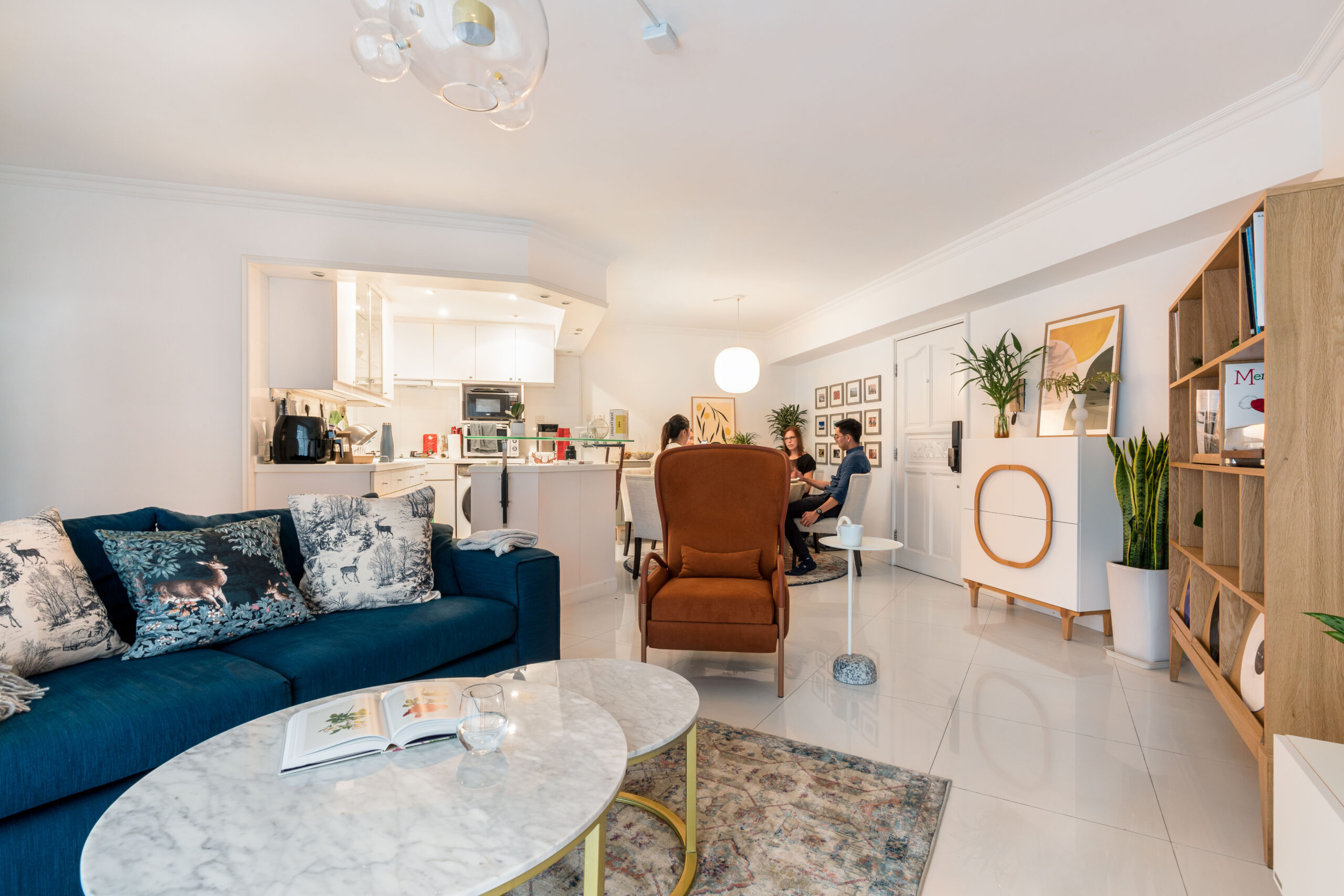 Kristi & Edwin wanted their Taikoo Shing home to better reflect how they were living, spending more time at home, craving comfort, and wanting a style that felt uniquely theirs. Eclectic, modern, and warm, but still neat and organised. We focused on threading their personality into the open-plan living and dining room, balancing bold colour and cosy textures with clean lines and functional layouts. The result is a cohesive space that feels both inviting and clearly defined, giving each area its own character while working seamlessly together.
