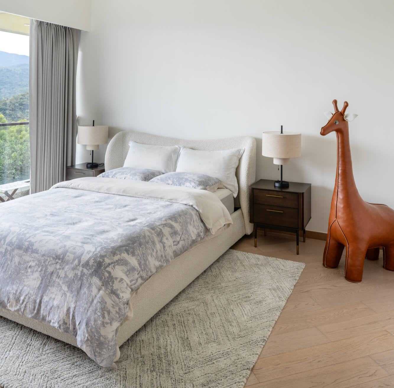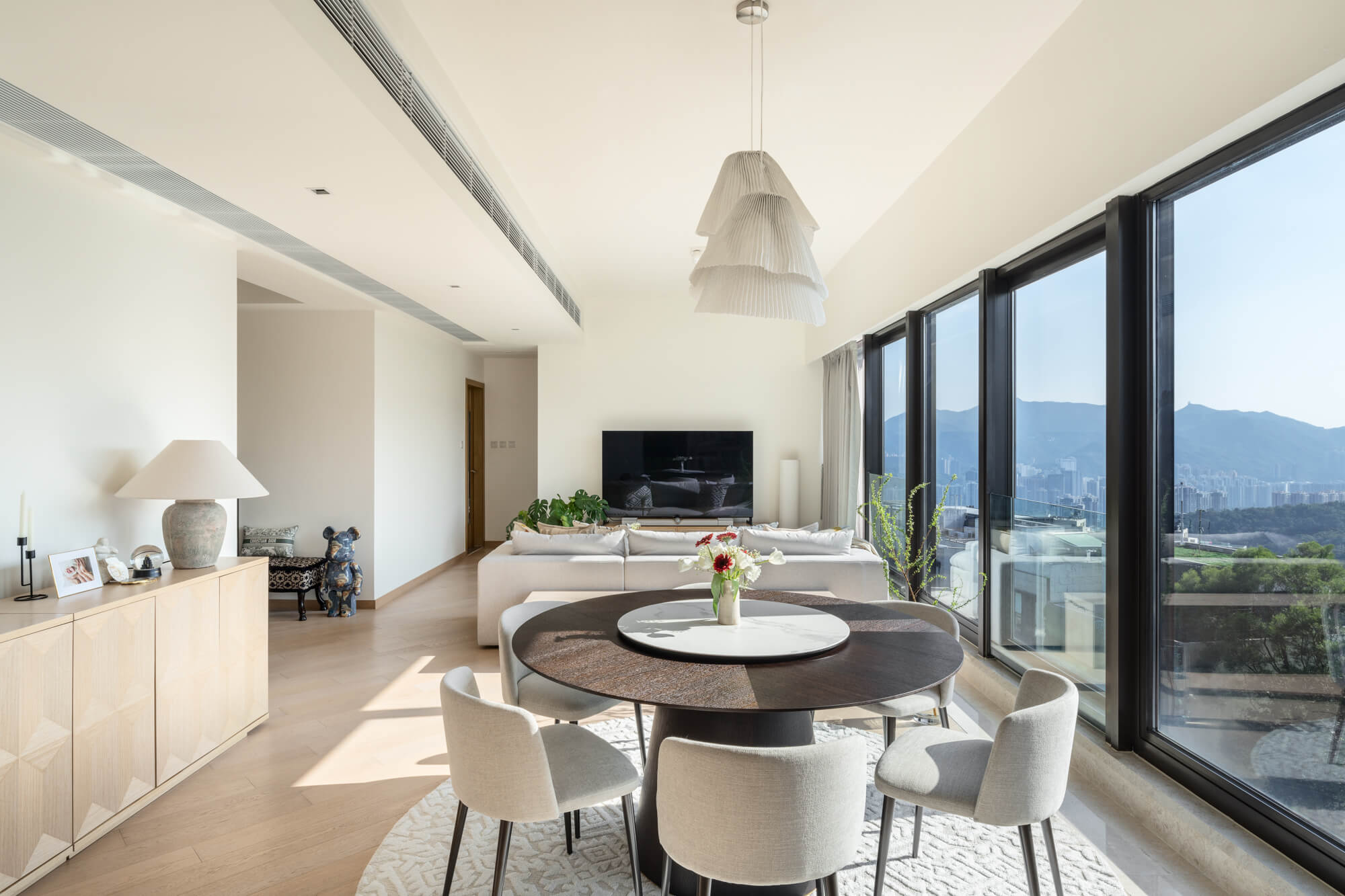 Step into Kristie’s refreshed home in the New Territories, where modern farmhouse style meets elegance with a playful twist. Framed by expansive mountain views, this apartment is both a retreat and a canvas for personality, complete with whimsical touches like bold animal sculptures that spark curiosity and conversation.