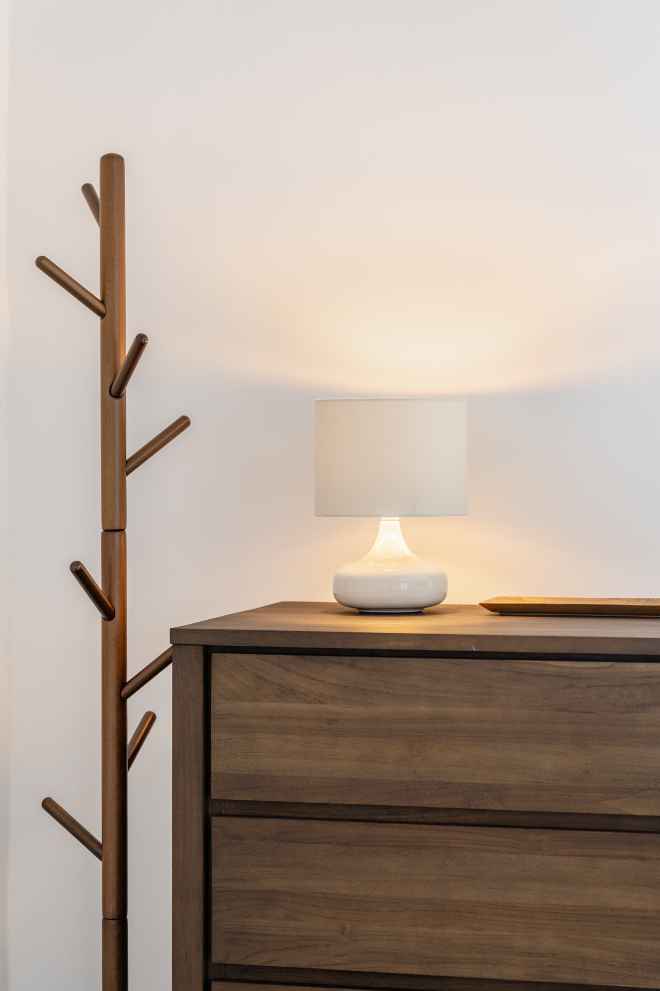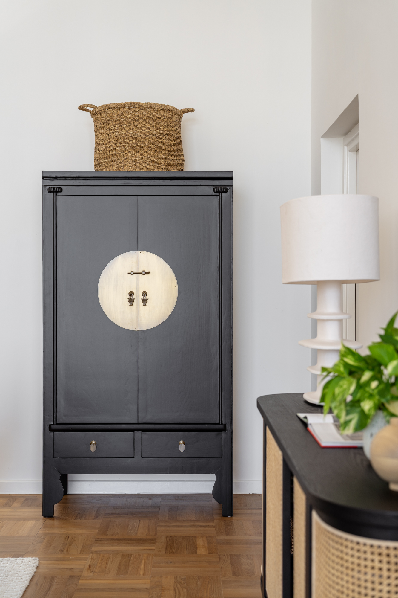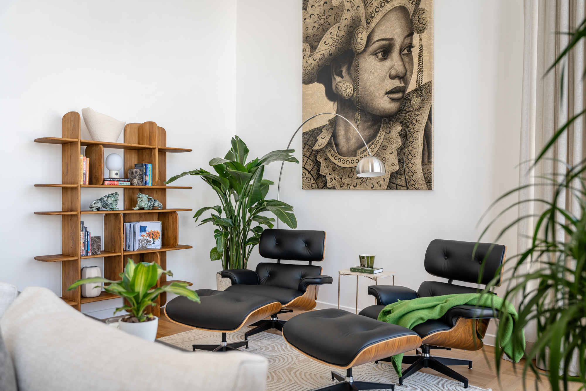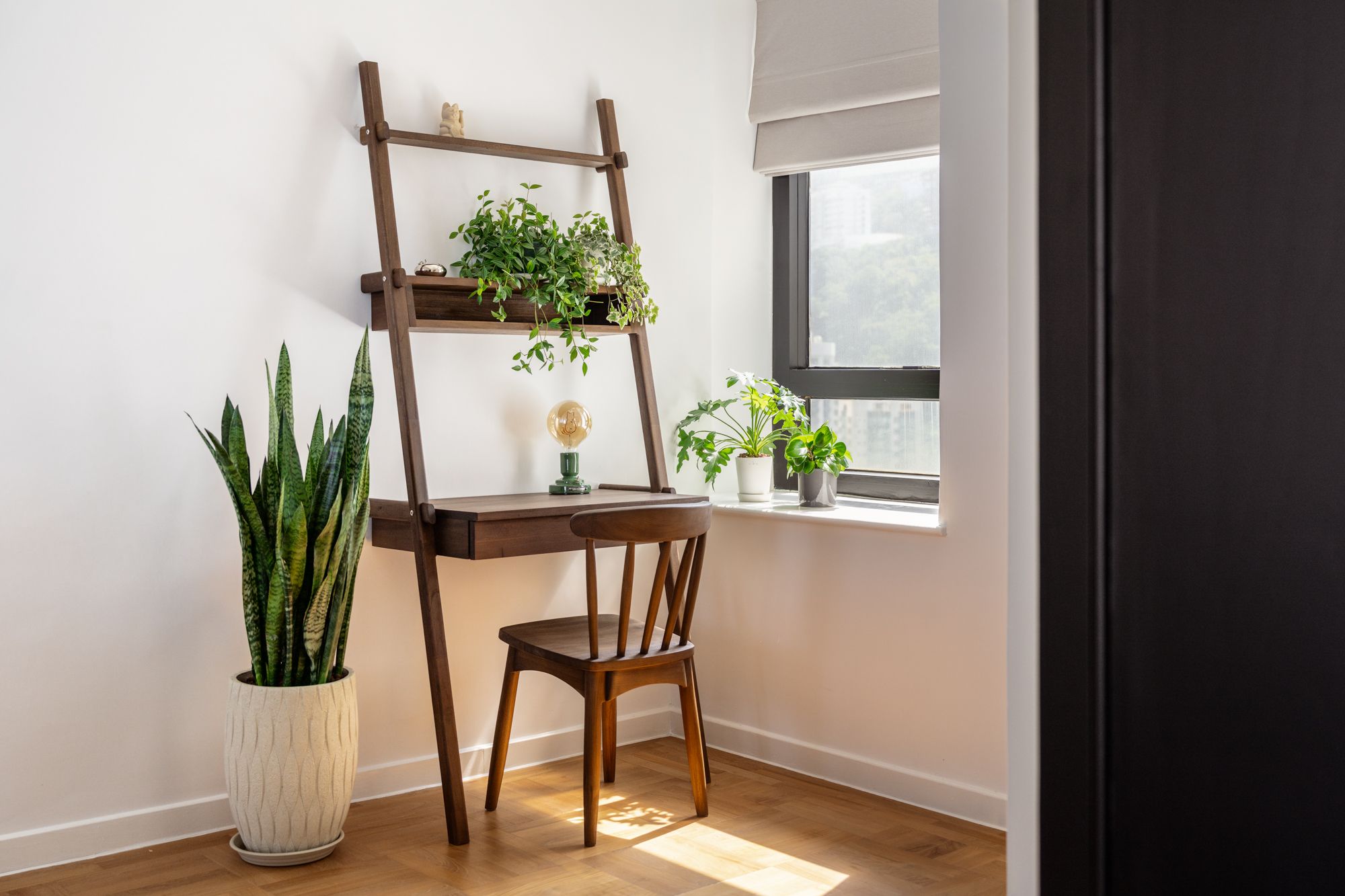 Moving homes rarely involves starting from scratch, and in this case, Lena already had a collection of beautiful pieces she loved, from her dining table and sofa to armchairs and artwork that carried memories from her previous space. The challenge was making these familiar elements feel at home in a completely new setting. This wasn’t our first time doing some rental-friendly home styling in Queen’s Garden in Central! We’ve styled other duplexes in the same building before and always look forward to the sweeping city views and clever layout, where the living and dining areas overlook the skyline.