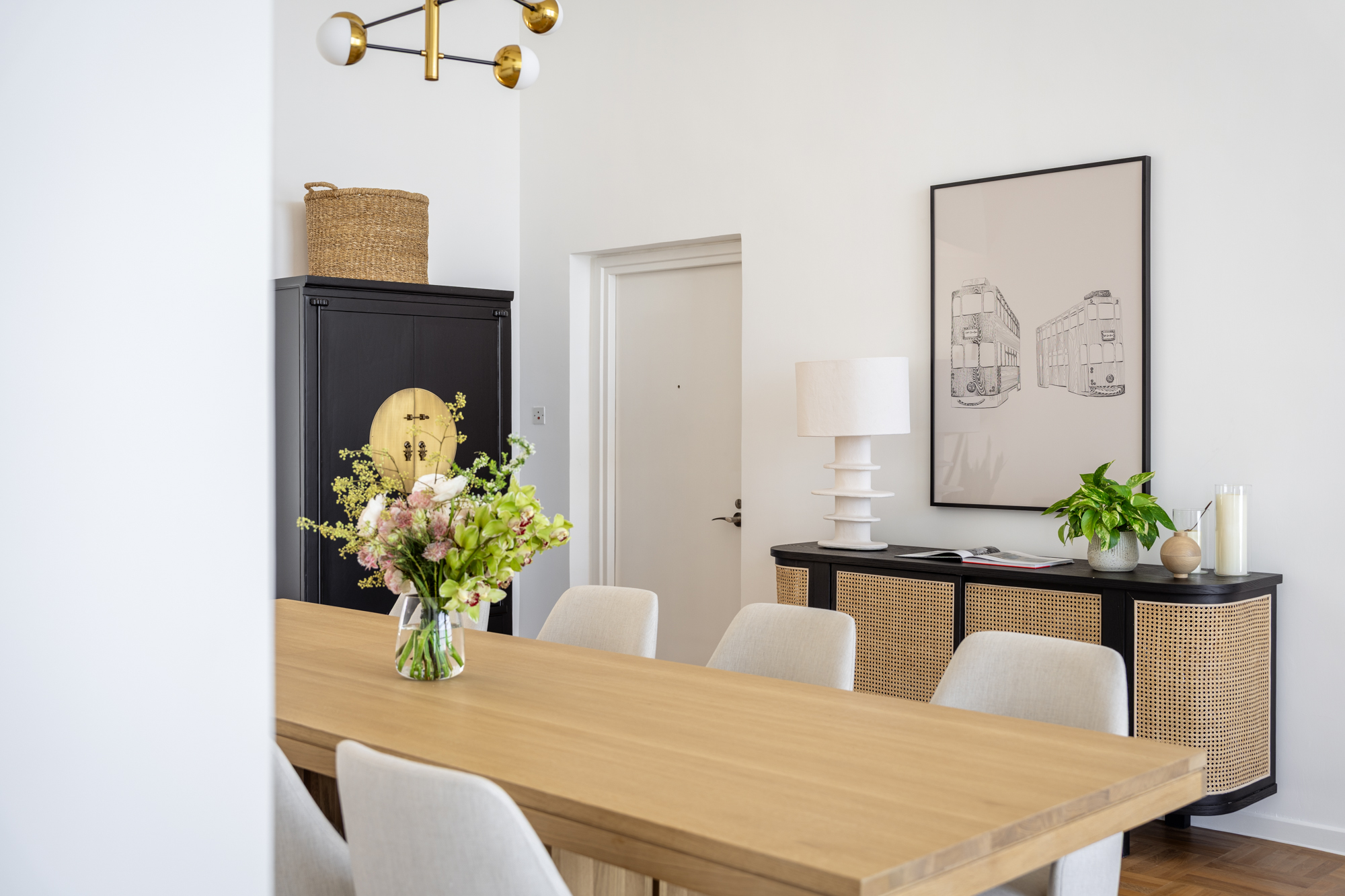 With generous natural light and an open flow between rooms, the space offers the perfect canvas to blend old and new seamlessly. Lena wanted a home that felt polished yet comfortable, elevated but still personal, where everything worked together rather than feeling like a mix of separate pieces. Our goal was to honour what she already owned while carefully layering in new elements to create a cohesive look.