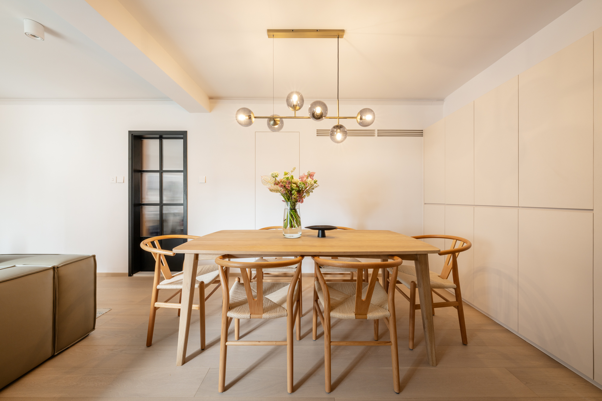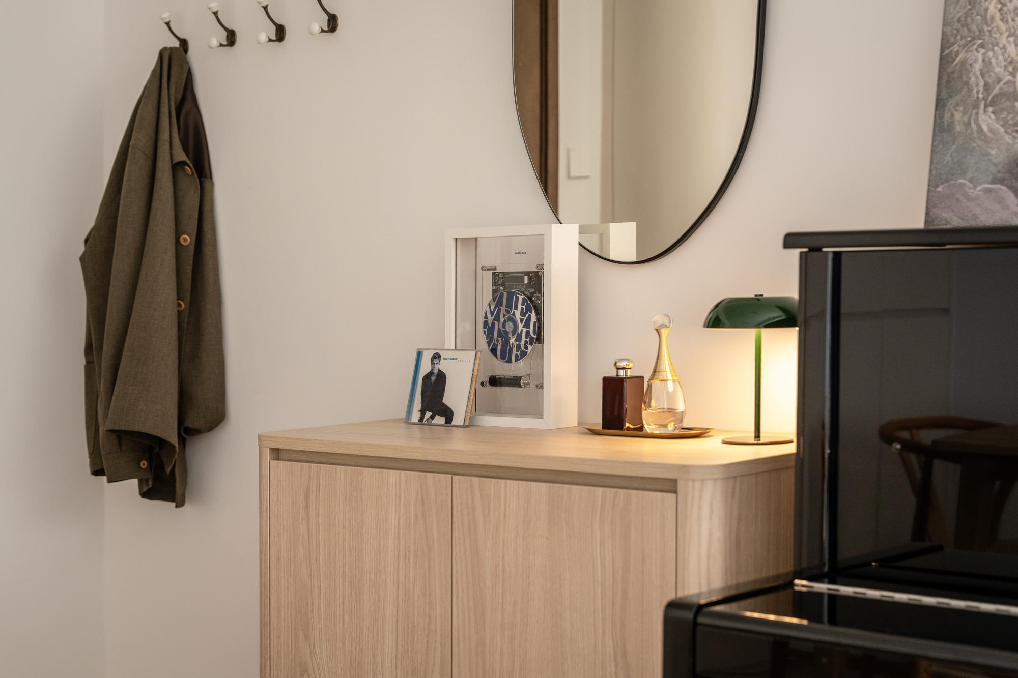 Theo and Iris purchased their apartment with plans to transform it into a light, open home that better reflected their daily lives. As a musically driven couple, they needed space for their instruments while keeping the atmosphere uncluttered and easy to live in.