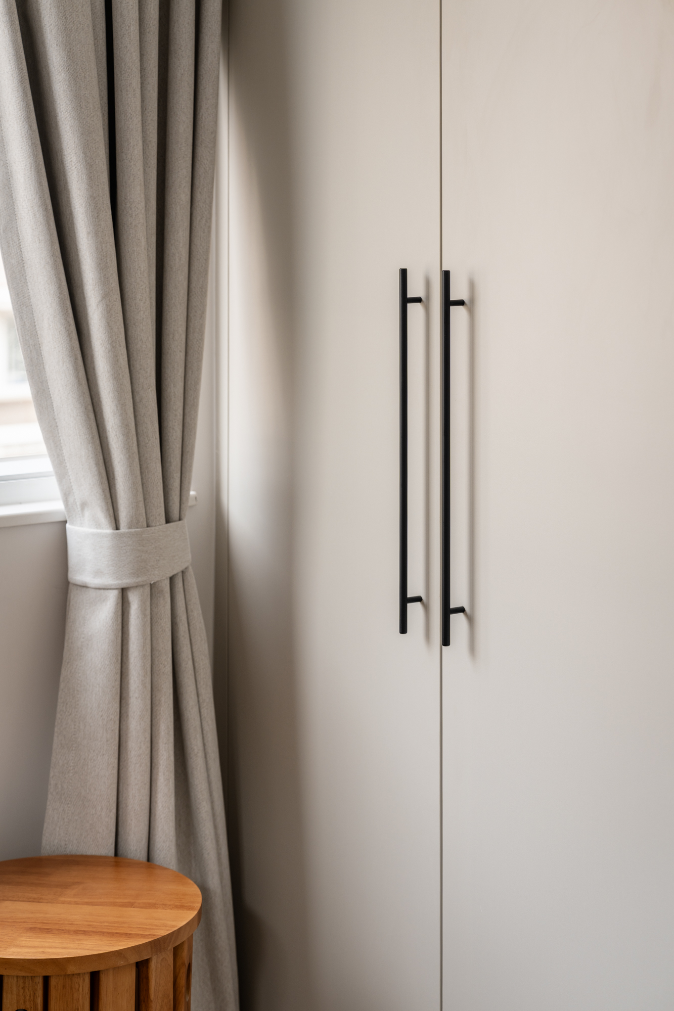 The bedroom was conceived as a peaceful sanctuary, free from visual noise and designed for rest. Soft tones and clean lines create a soothing backdrop, while carefully chosen furnishings ensure the room feels complete without becoming crowded.