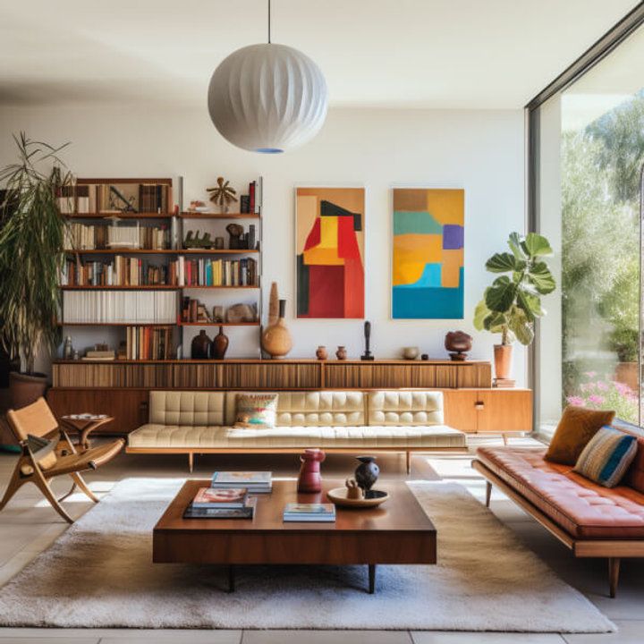 Mid-century modern design is celebrated for its flexible colour palettes, but moderation is key to maintaining elegance. To achieve a timeless and modern space, begin with neutral base colours.
