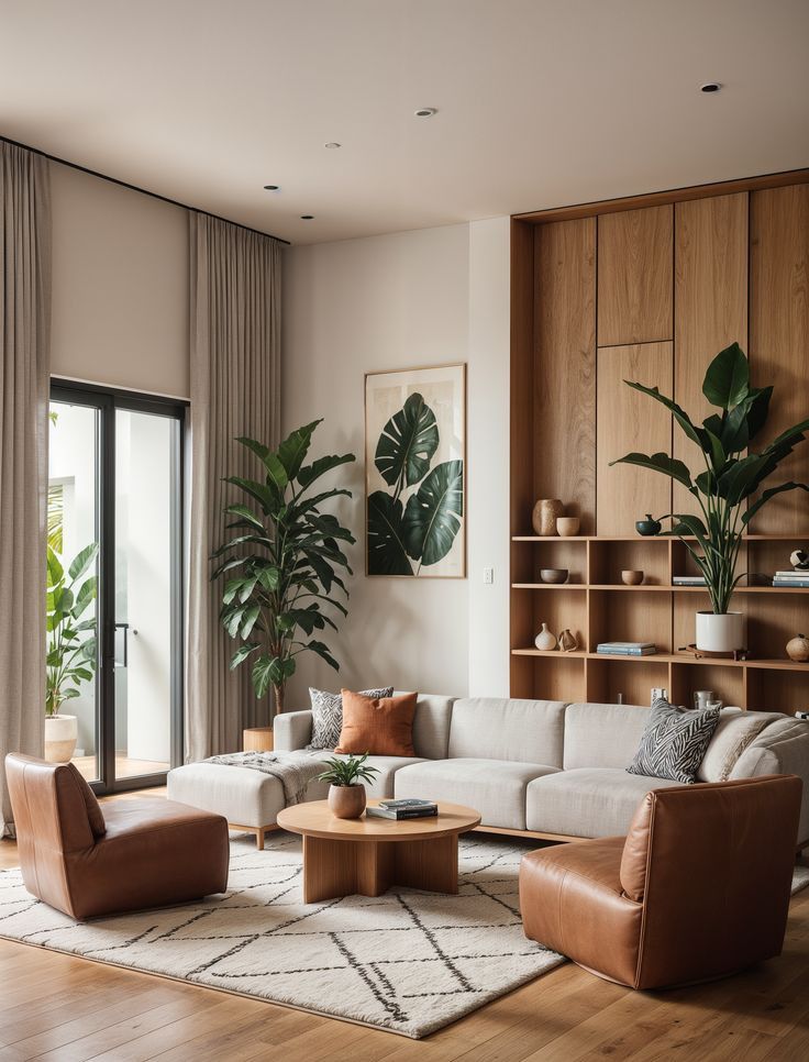 - Complementary Textiles: Use geometric or abstract patterns in rugs, throws, and curtains to add visual interest while keeping the overall look cohesive.