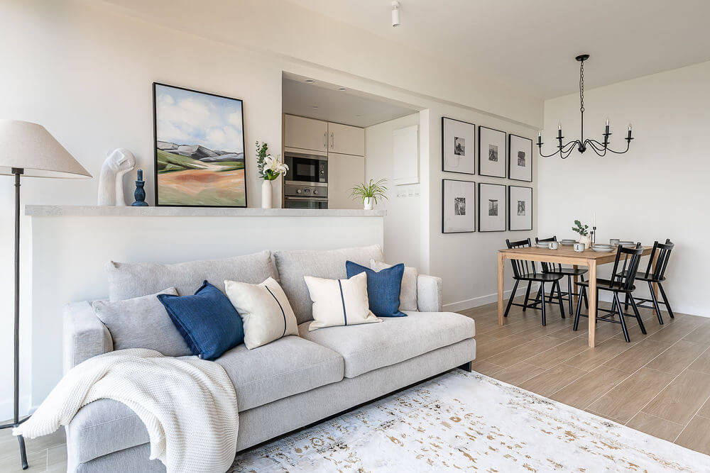L-shaped or modular sofas help zone open-plan spaces, while simple two-seaters work well in tighter flats. - Go for raised legs to create a lighter look